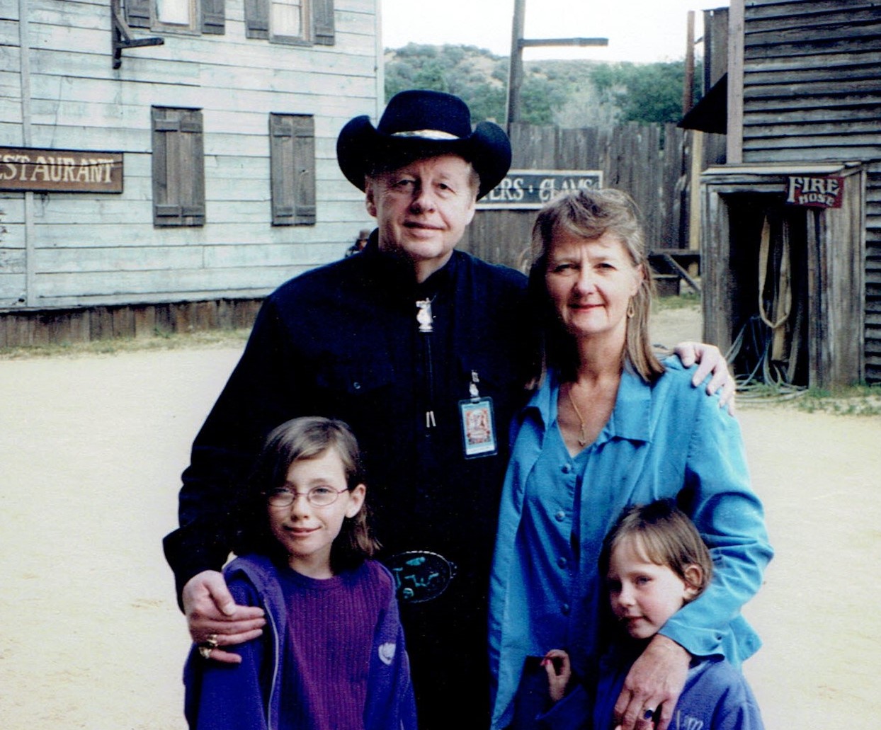 Johnny Western with me and my daughters, April and Amanda, at the Santa Clarita Cowboy Poetry Festival in California, March 2002