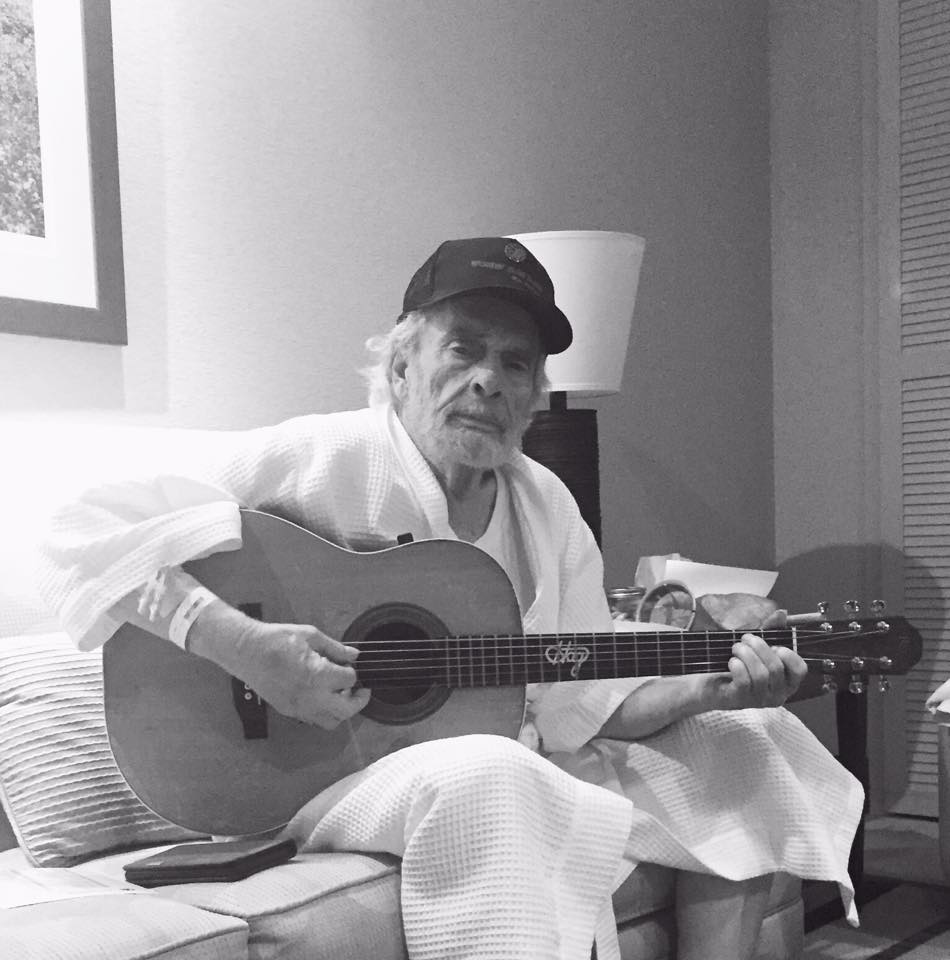 Due to pneumonia, Merle Haggard canceled his December shows and checked into a California hospital. The dates have been rescheduled for late January through February. Merle posted this photo of himself on Facebook:
