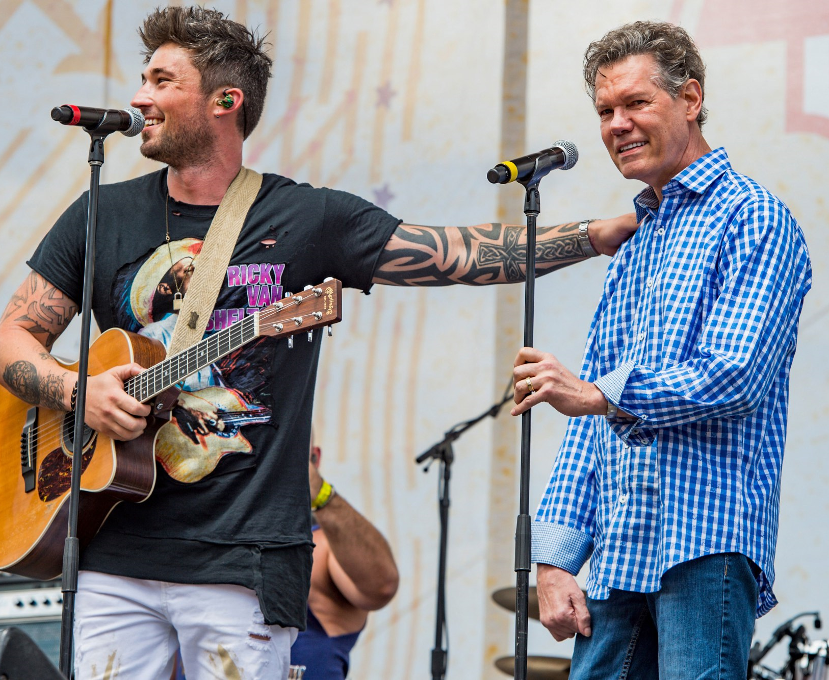 During the recent CMA Music Festival in Nashville, Randy Travis held a meet-and-greet for 200 people at the Country Music Hall of Fame and Museum. People Country reports, “No autographs from this artist, and no more than a tentative ‘hello’ or ‘thanks.’ A handshake? Yes, but only from the left hand, not the right.” The fans were thrilled simply to sit next to him and have a photo taken. Randy also appeared on stage with Michael Ray during an outdoor concert. He sang the final “Amen” during Ray’s performance of Randy’s signature song, “Forever and Ever, Amen.”